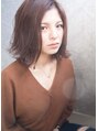 カットは肩上の長さの切りっぱなしボブ。 カラーは透明感たっぷりのベージュなので髪の毛が硬い人や多い人でも ふんわり軽く見せる事ができます!