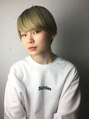 前髪とサイドのマッシュラインがポイントのベリーショートスタイル!ハイトーンのカラーともぴったり☆