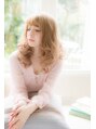 柔らかさと丸みを出した、お人形さんみたいなロングスタイルです。目の上ギリギリのバングで目力を強調☆赤みのないハイトーンで外交人風に(^^♪