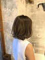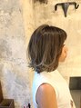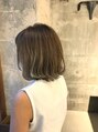 肩ギリギリ上の長さの前下がりBOBスタイルです◎カラーはミルクティーアッシュ系のなチップグラデーション♪