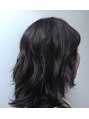前髪を眉上で短く作ったメリハリのあるミディアム。伸ばしかけで飽きがきている時のイメージチェンジにオススメです!カラーは濃いめのブルー入れてます。ハイライトを入れているので、より色味を感じる事がてまきます。