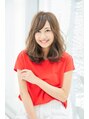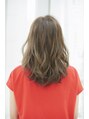 大人可愛いふんわりセミロングスタイル!前髪はサイドにつなげて小顔に見える効果バツグン!ウエーブパーマをかけてふわっふわに!当店のコスメパーマはダメージレスで柔らかくかけれます。カラーはコックリとしたネイビーアッシュで外国人の柔らかさを演出!
