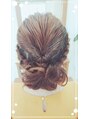 お呼ばれアレンジスタイル下にボリュームを持ってきているので落ち着いているスタイルにサイドに編み込みをして華やかさをプラスしています。