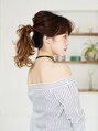 「5分で出来る大人のポニーテール」ベースにはしっかりとウェーブをつけ、スタイリングウェットをなじませることでうるんだようなツヤを出します。前髪は薄めに取り、ストレートアイロンで透けバングに。【EARTH北小金】