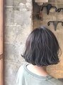 首元がスラッと見える短めボブに、透明感のある柔らかグレージュカラーを。コテ巻きでラフなカールをプラスして大人カジュアルに。