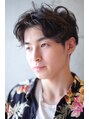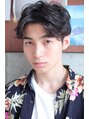 マッシュスタイルベースでカットしているので、前髪をおろしてスタイリングすることもできます。トップや顔周りにもパーマがかかっているので動きを出したい方にオススメです!センターパートで額を出しすことで無造作でありながらもスッキリ感を出せます。