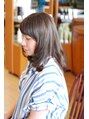 赤みが出やすいので、ハイライトを入れてアッシュ系のアヴェダカラーでカラーリング。カットはレイヤーの入ったセミロングです。