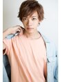 ななめバングのアシメショートで無造作カッコイイモテ髪スタイル。甘めのブラウンで優しい雰囲気に。スタイリングは毛先に動きをつけてハネ感を出しました。