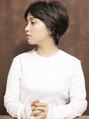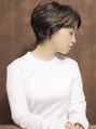 トップにレイヤーを入れて頭の形を良く見せた、大人のセンターパートのショートスタイルです。前髪が真ん中で分かれやすい方におすすめです。耳の後ろをしめて襟足をやや残す事で縦シルエットを作っています。