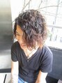 ウルフカットに少しゆるめのパーマをあてました。トップからボリュームが出やすいパーマスタイルです。朝セットしなくてもいい感じに♪この春オススメスタイル!!サイドの内側は刈り上げてあります。