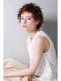 無造作な動きと束感のある、個性的だけど品のあるショート。アシンメトリーな斜めバングで小顔に見えます。似合わせカットで簡単スタイリング。