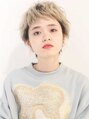 根元を暗めに設定した、メリハリのあるショートスタイルです。根元を外してブリーチ後、ペールグレージュをワンメイク。