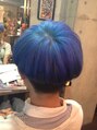 ブリーチ後、薄めの青をON♪派手髪ですが・・・ショートボブで少しモードっぽい雰囲気を出しています♪