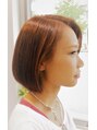 ストレートの前下がりボブ。毛先のラインはしっかりみせつつ柔らかさを出すようにカットしました。