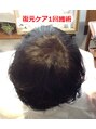 毛髪復元ケアのビフォーアフターです施術前に比べて1回の復元ケアでツヤが出ているのと髪が軽くなり根元の立ち上がりがついて分け目が目立たなくなっています。3回した後、ツヤハリコシも良くなってきました。仕上げは復元ドライヤーでハンドドライのみです