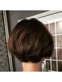 秋になってカラーもこっくり艶カラー。毛先に動きが出てくる柔らかパーマで大人かわいい前下がりショートボブ☆
