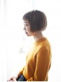 ぱっつん前髪が印象的なショートボブです。横のラインがはっきりでていて今年のトレンドにもあうスタイルになっています。