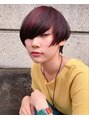 長めのバングが特徴的なモード系ショートボブ。秋を意識したコーラル系の色でクールな雰囲気を作り出します。スタイリング剤で揉み込んであげると可愛いめショートボブにもなるので2パターンのスタイリングが楽しめます。