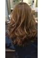 ベースにカラーメッシュが入っていたので10トーンのベージュを少し入れて透明感を出しています。巻きはメッシュの部分をしかっり巻いてあげると立体感がさらにでますよ。