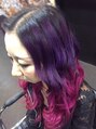 パープル~ピンクのグラデーション。あえて、根元はリタッチせず、自然なグラデーションになるようにしています。