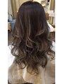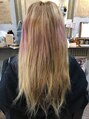 ベースはカラーバターが入っていたので毛先のみブリーチでハイトーン状態にいておきます。カラーでトップを6トーンもモノトーンで色を入れてから毛先の部分にグレージュの色味を入れて出来上がりです。
