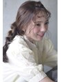 ツイストで1にまとめます。前髪の生え際をぐるぐるにして、外国人のくせ毛風に。