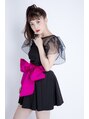 高い位置でポニーテールにして、毛先はストレートで無造作な揺れ感を表現しました。シンプルですが、女性らしい強さのあるスタイルです。