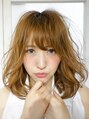 ふんわり可愛いミディアムレイヤーボブ。伸ばしかけのハネるレングスもレイヤーをつけてあえてのハネ感、ふんわり感を。カラーは、ゴールドベージュで気分も明るく。
