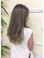 ブリーチでハイライトをいれてからのグレージュカラーにしました。色持ち良くすこーし濃いめに入れるのがポイント。透明感もでて巻いても綺麗です。