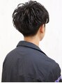ランダムなカールがポイントのマッシュパーマスタイル。サイド、襟足はすっきり刈り上げてます。ツヤ系スタイリング剤で毛束感を出すのがオススメ!