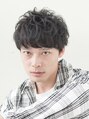 マットな質感と、ランダムに強弱をつけたパーマスタイルです。サイドはツーブロック、襟足は甘めに刈り上げているので清潔感もあるすっきりとしたショートマッシュがベースになっています。