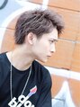 男らしくアッブバングでスッキリ爽やかヘアに!サイドの隠し2ブロックとサイドのリバース感で好印象にゆるめのミックスパーマでスタイリングもグッと楽になります!カラーは9トーンのショコラグレージュ