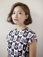 かき上げ系、毛先1カールの重ためボブ。重ためボブなので安定したまとまり。カラーは透明感のあるアッシュ系で、ハイライトを表面に入れて軽さもプラス。かき上げ大人カジュアルスタイルです!これからの季節には柔らかさをプラスすると雰囲気が出ます☆