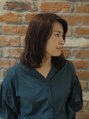 モノトーン系のカラーでトーンダウンして大人めな雰囲気のミディアムスタイルです。毛先には動きがでるくらいのパーマをかけました。