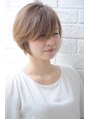 家でもお手入れ楽チンなショートボブ♪耳にかけてもよし!カラーはほんのり赤みを消してベージュ系に☆ベージュ系カラーにすることで柔らかさとボリューム感が出たように見えます。前髪はアリでもナシでも◎