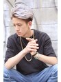 七三気味のオールバックスタイル!刈り上げ部分とのメリハリで横顔がキマります!モード、ストリートファッションにオススメです!カラーリングは、ブリーチ数回したあとにパンチの効いたラベンダーミストカラーをオンカラー!