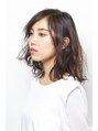前上がりのボブをベースに大きくうねる程度のパーマをかけてボリュームあるヘアスタイルに。前髪を伸ばしてる方にもオススメのヘアスタイルです。