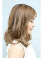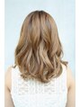 セミロングのウェーブ、スタイルです。アイロンのミックス巻きで重ならない強めにランダムな毛流れをつくっています。内巻きと外巻きを繰り返して巻いてラフさを出しています。動きが出るよう全体は軽いスタイルに。