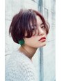 【MAULOA】無造作ナチュラル小顔ショートボブ 鬱陶しいか前髪が、クールなニュアンスを生むレッド系のカラーでほんのり柔らかさをプラスナチュラルにかけたパーマでアンニュイな雰囲気を