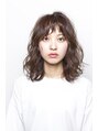 バングは無造作に、ほつれるような動きのあるウェーブが印象的なミディアムスタイル。かわいいだけじゃ物足りない方におすすめ。カラーは柔らかく艶っぽいシフォンベージュで。