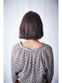 切りっぱなしボブに秋カラーのバーガンディーブラウンをオン。赤紫系のカラーでトレンド感と艶をプラスすることで肌に透明感が出るようにスタイリングしています。