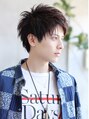 ザクザクした束感がカッコいい!好印象爽やかアップバングショート!あげすぎないハーフアップの前髪と、アウトラインのハネ感で小顔効果も!全体にゆるめのミックスパーマを施して毎日のスタイリングをぐっと楽に!カラーは7トーンのアッシュショコラ