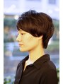 耳掛けユルショートです!骨格をブラントカットで作り、少ない削ぎで丸いシルエットが作ってます。丸いシルエットが好きな方にはオススメのStyleです!