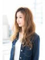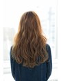 大きめのパーマでつくる無造作ロングヘアランダムに巻かれたカールが華やかさをだしてくれます!バングをかきあげる事によってトップにボリュームがでます!