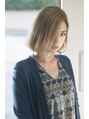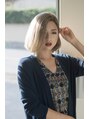 肩少し上のワンレングスカットに、ブリーチをしてからトリートメントカラーでヌーディベージュと少しシナモンを配合してオンしました。アッシュ(青み)に寄り過ぎる事なく美味しそうな色に仕上がります。色落ちは白っぽくなっていくのでオススメです。