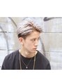 七三気味のオールバックスタイル!刈り上げ部分とのメリハリで横顔がキマります!モード、ストリートファッションにオススメです!カラーリングは、ブリーチ数回したあとにパンチの効いたラベンダーミストカラーをオンカラー!