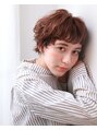 カーリーなウエーブのショートは外国の少年のようなイメージが新鮮!パーマとオレンジベージュのカラー。キレイ目なファッションと合わせて、ハイセンスに着こなして!ショートがマンネリ化してきた方に、今年は少し攻めたスタイルがオススメ!