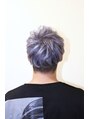 ブリーチでしっかり色素を抜いた髪に対し、シルバーアッシュをオン!刈上げが見えるくらいサイドとバックは短く、トップは軽く動きが出るように。それとは対照的に前髪は少し長めに残しアンニュイな雰囲気に。