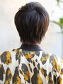 カットが決まれば、ノーセットでも決まる!普段スタイリング材をつけたくない方、ヘアオイルのみでもナチュラルに決まります!襟足をくびれるようにカットすることにより、コンパクトウルフのフォルムに。カラーは7トーンのセピアグレー