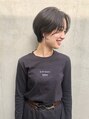 大人モードなショートスタイル。首筋を綺麗に見せるシルエットと気品ある髪色で、落ち着いた印象の中にオシャレさを。前髪を作ることで、大人っぽさに抜けを出しています。
